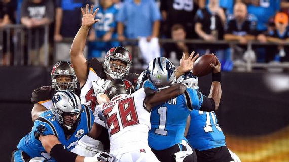 CHARLOTTE, N.C. -- The shift to Todd Bowles’ aggressive defense continues to pay off for the Tampa Bay Buccaneers, who got an important divisional road win against the Carolina Panthers Thursday night, avoiding an 0-2 start for the first time since 2014.